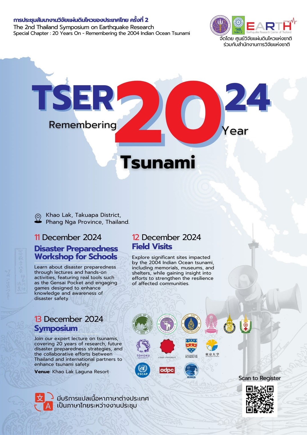 Welcome again to the 2nd Thailand Symposium on Earthquake Research. This time, together, we are remembering the 2004 Indian Ocean Tsunami